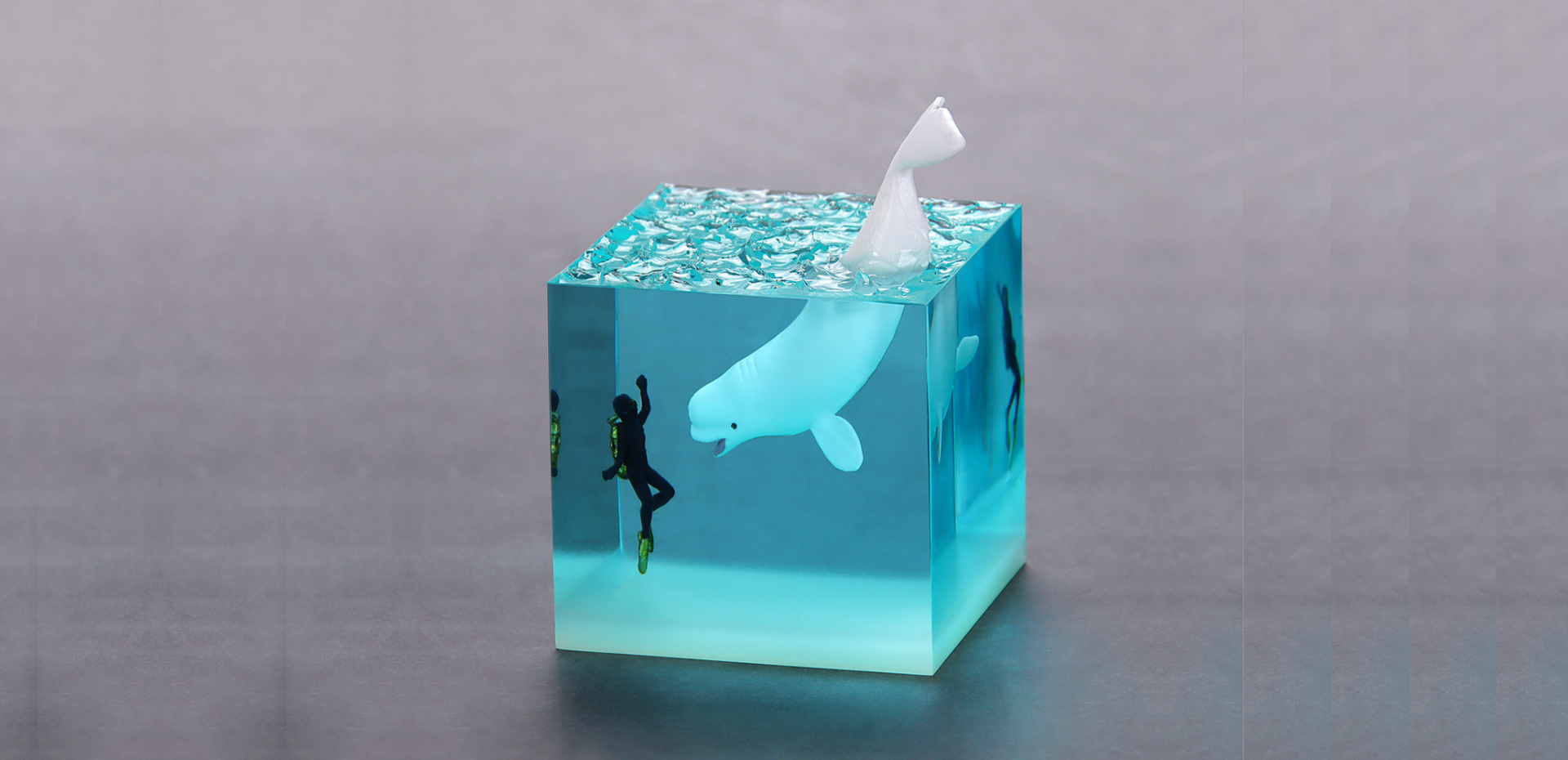 Beluga whales Diving Resin Cube | Handmade Eco-Friendly Ocean Art Gift