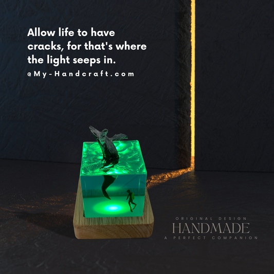 Handcrafted resin art that captures a tender encounter between sea and soul