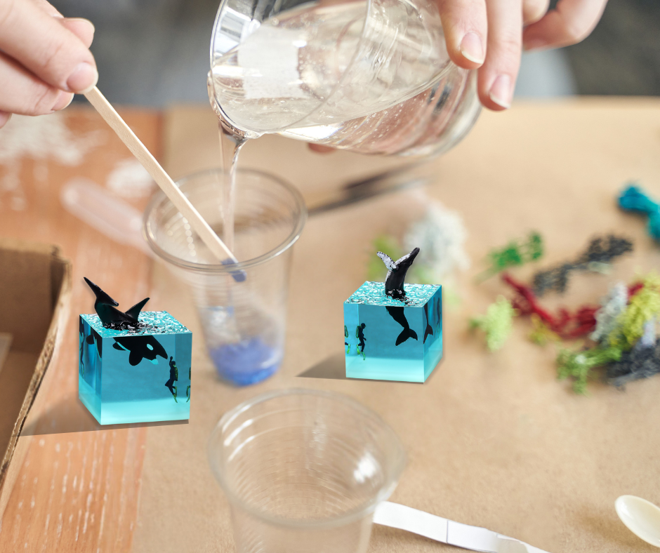 Handcrafted Resin Gel Drip Art Decorative Piece Featuring Ocean Whales