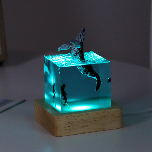 Ocean Whale Handcrafted Resin Art Cube – Unique Glow Night Light Gift