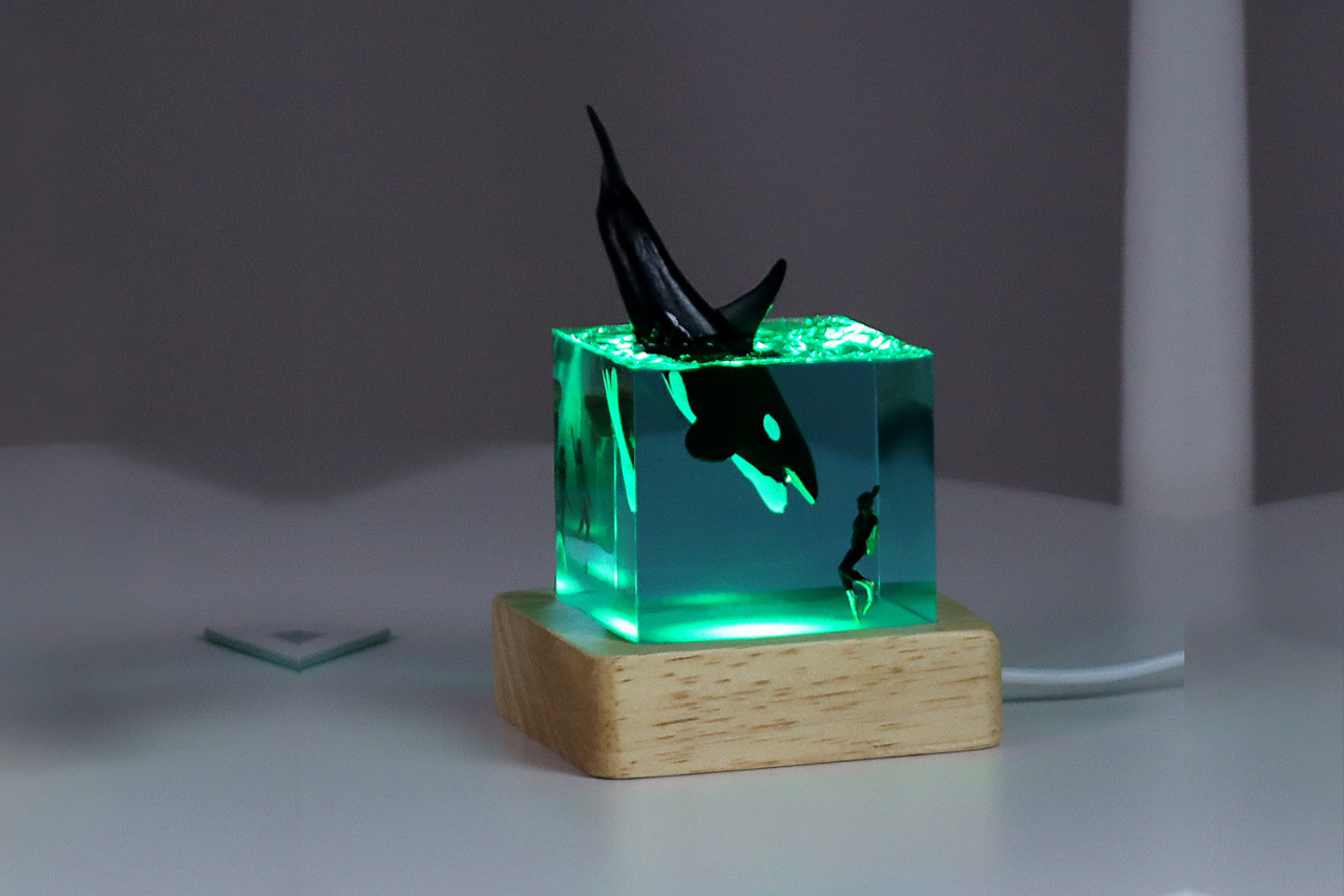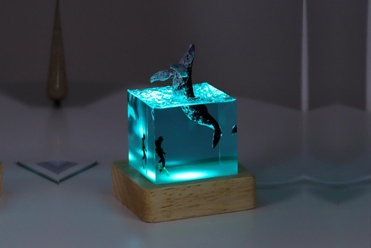 Ocean Whale Handcrafted Resin Art Cube – Unique Glow Night Light Gift
