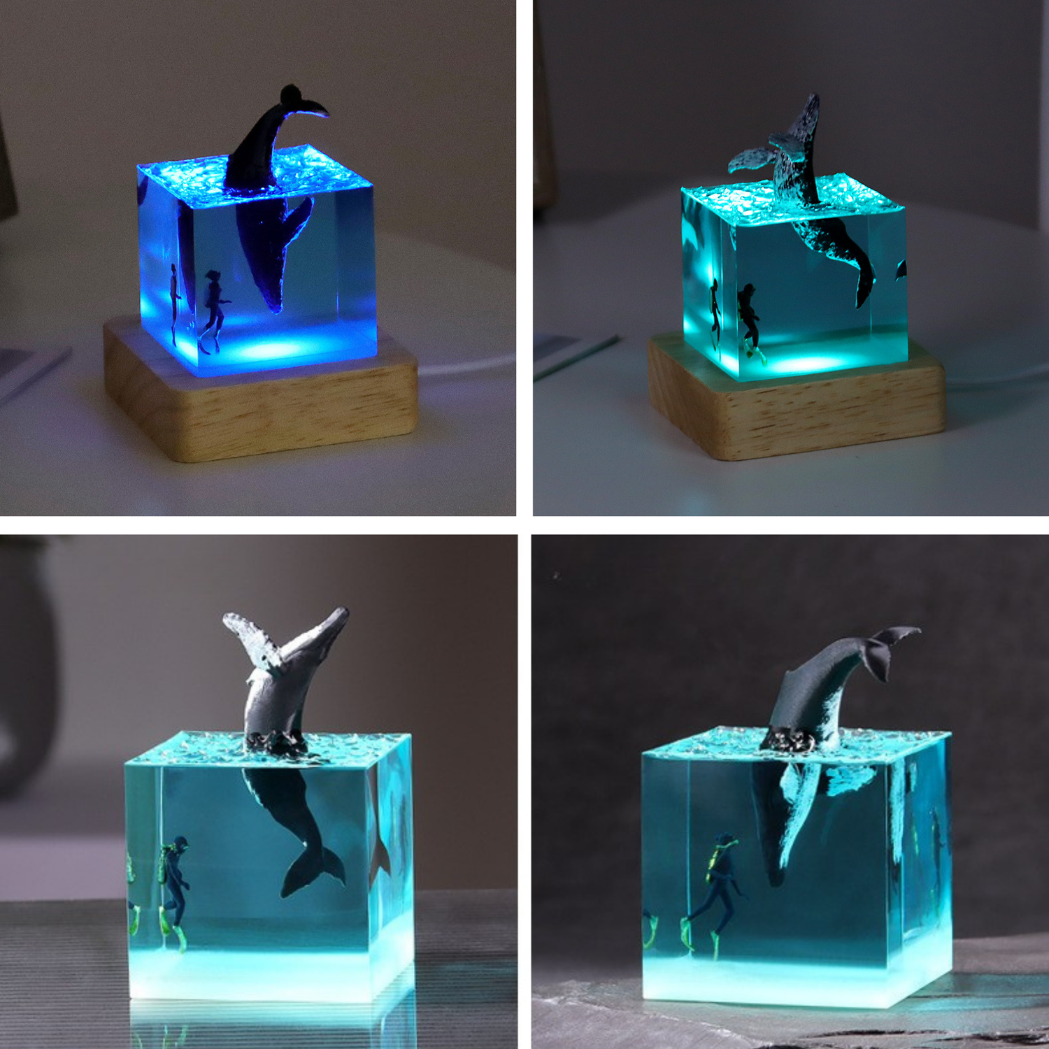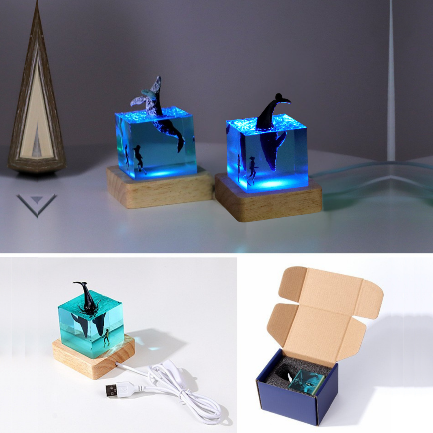 Ocean Whale Handcrafted Resin Art Cube – Unique Glow Night Light Gift