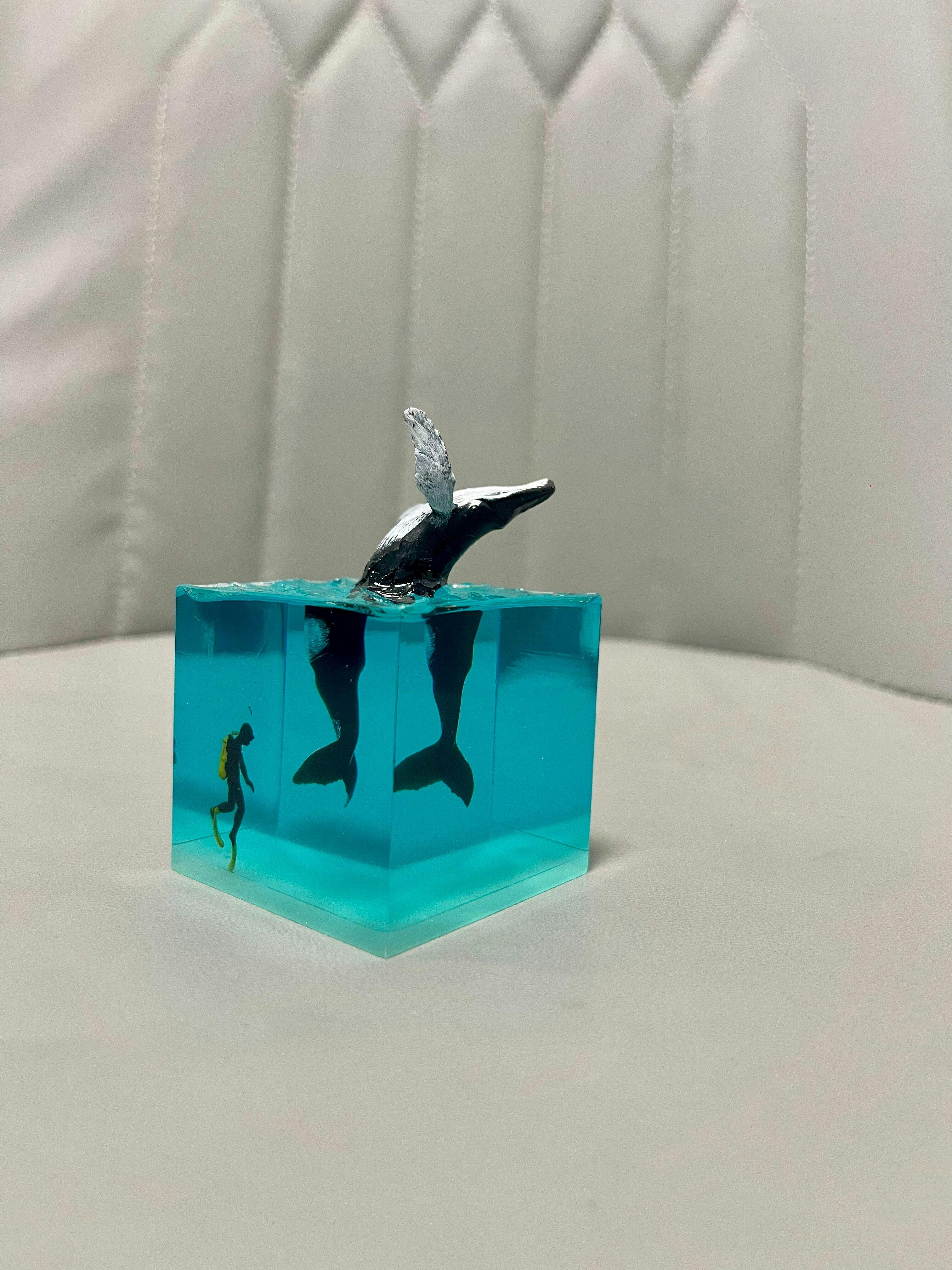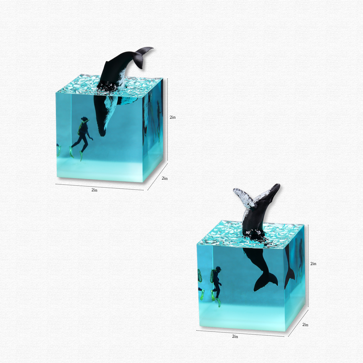 Beluga whales Diving Resin Cube | Handmade Eco-Friendly Ocean Art Gift