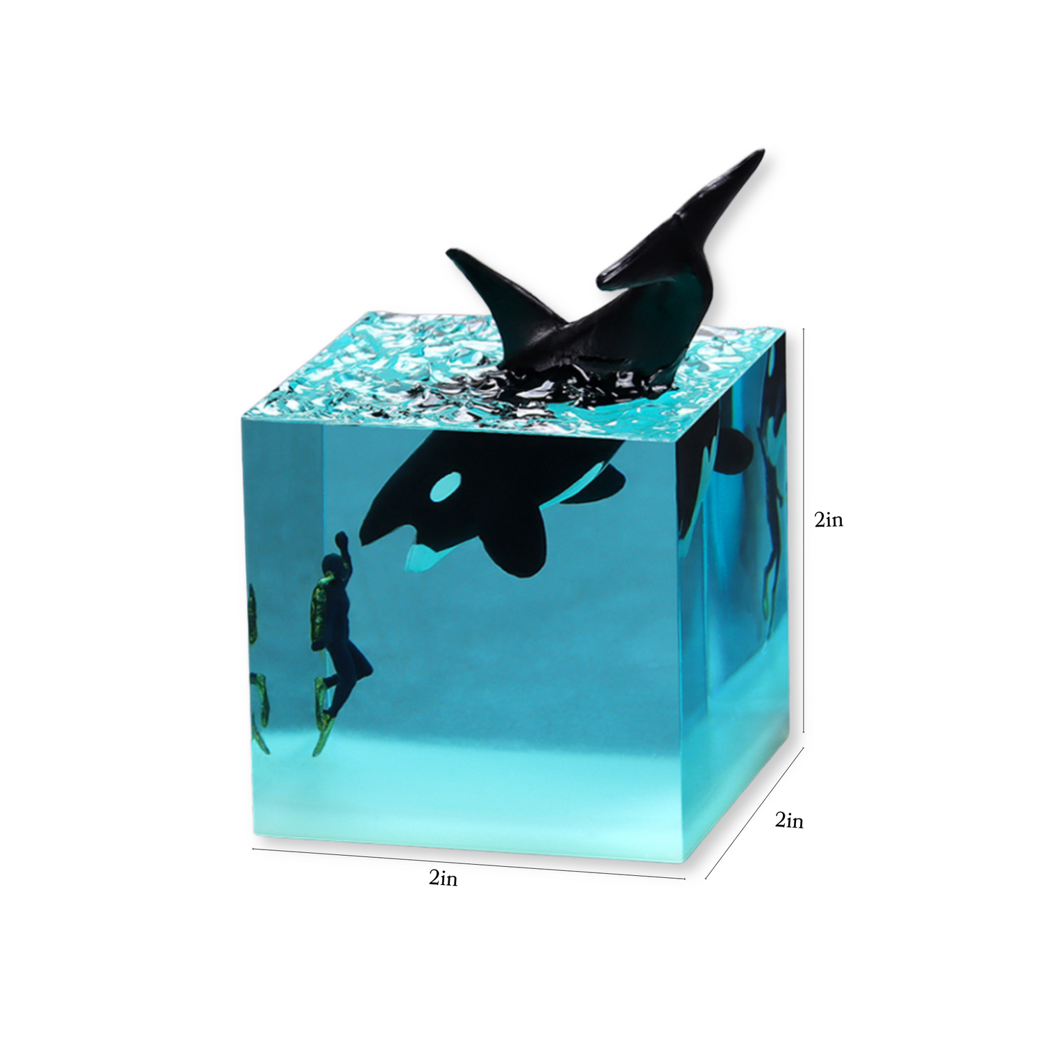 Beluga whales Diving Resin Cube | Handmade Eco-Friendly Ocean Art Gift