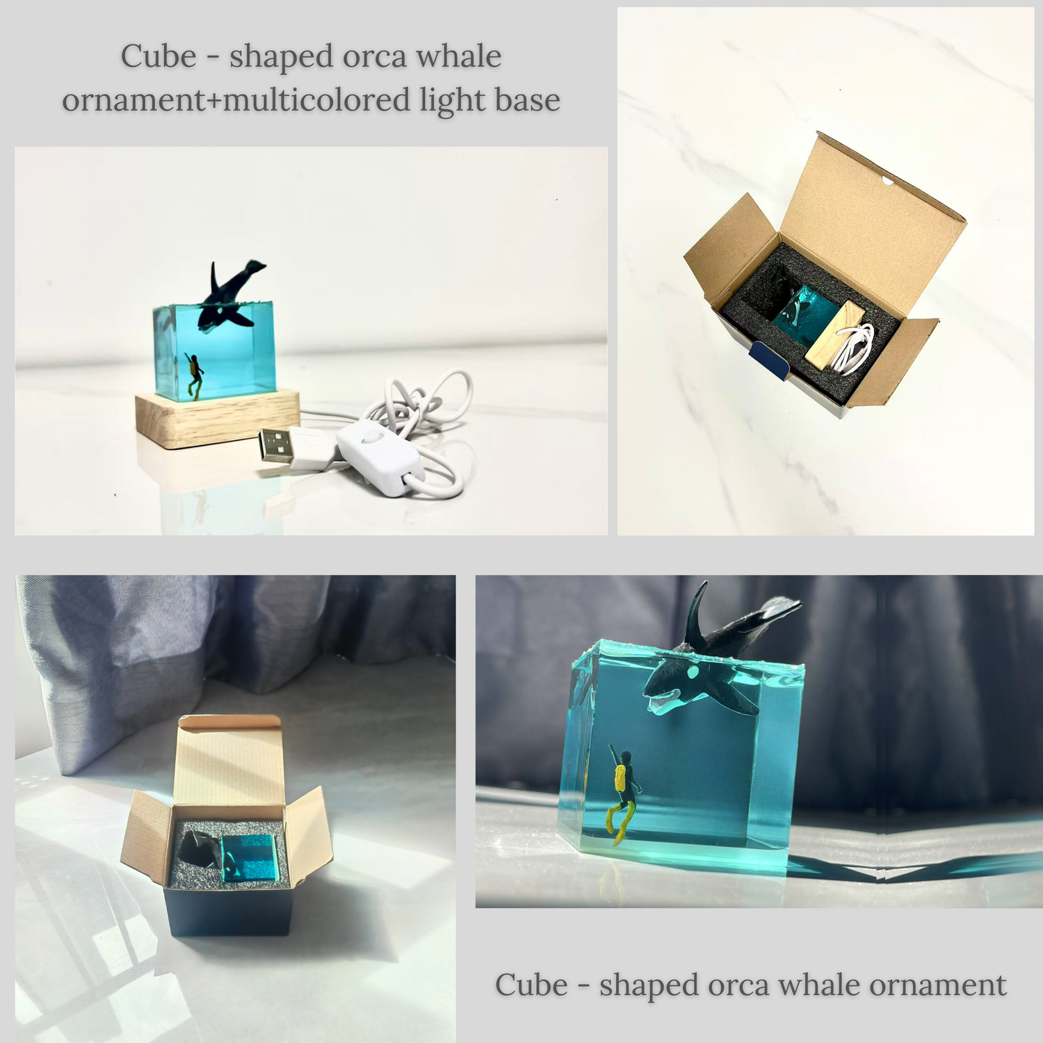 Ocean Whale Handcrafted Resin Art Cube – Unique Glow Night Light Gift